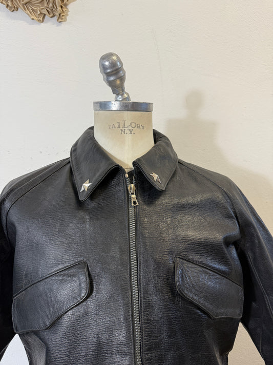Vintage Rare 1950s Leather Tank Crew Jacket “S”