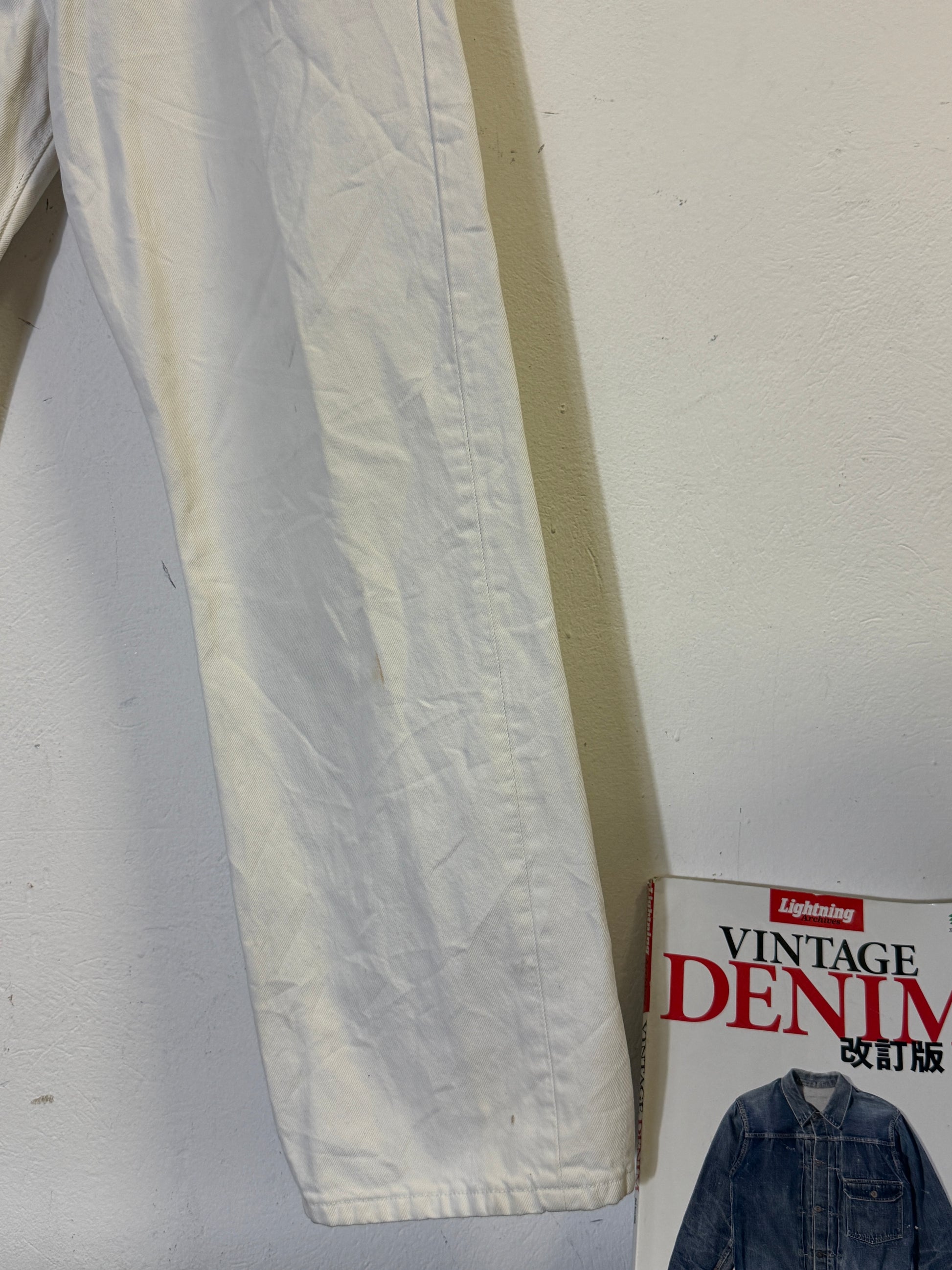 Dopo aver preso le misure abbiamo dedotto che la taglia del levis equivale ad una W35 L32 e non ad una W36 L30 come scritto nell’etichetta.